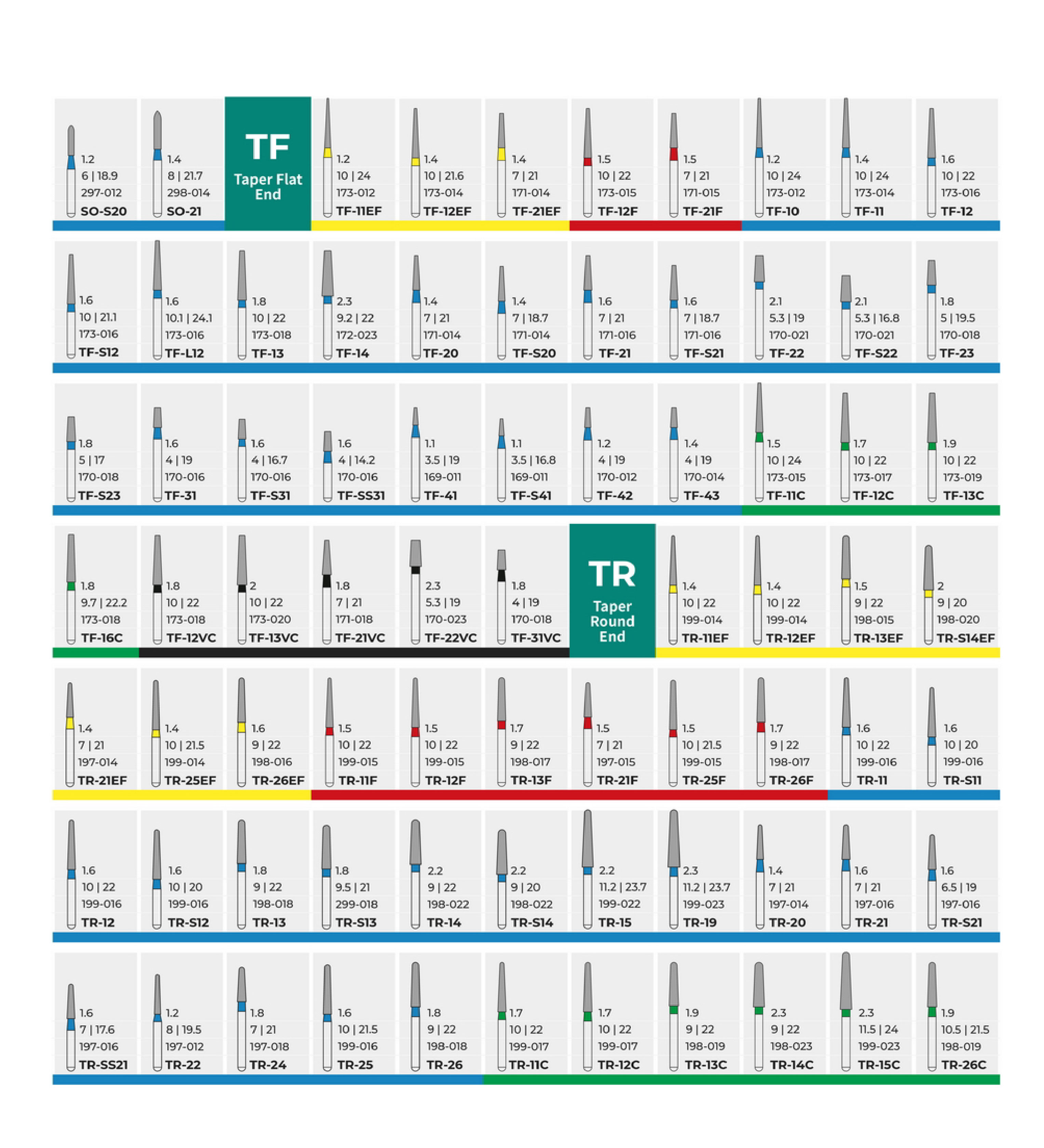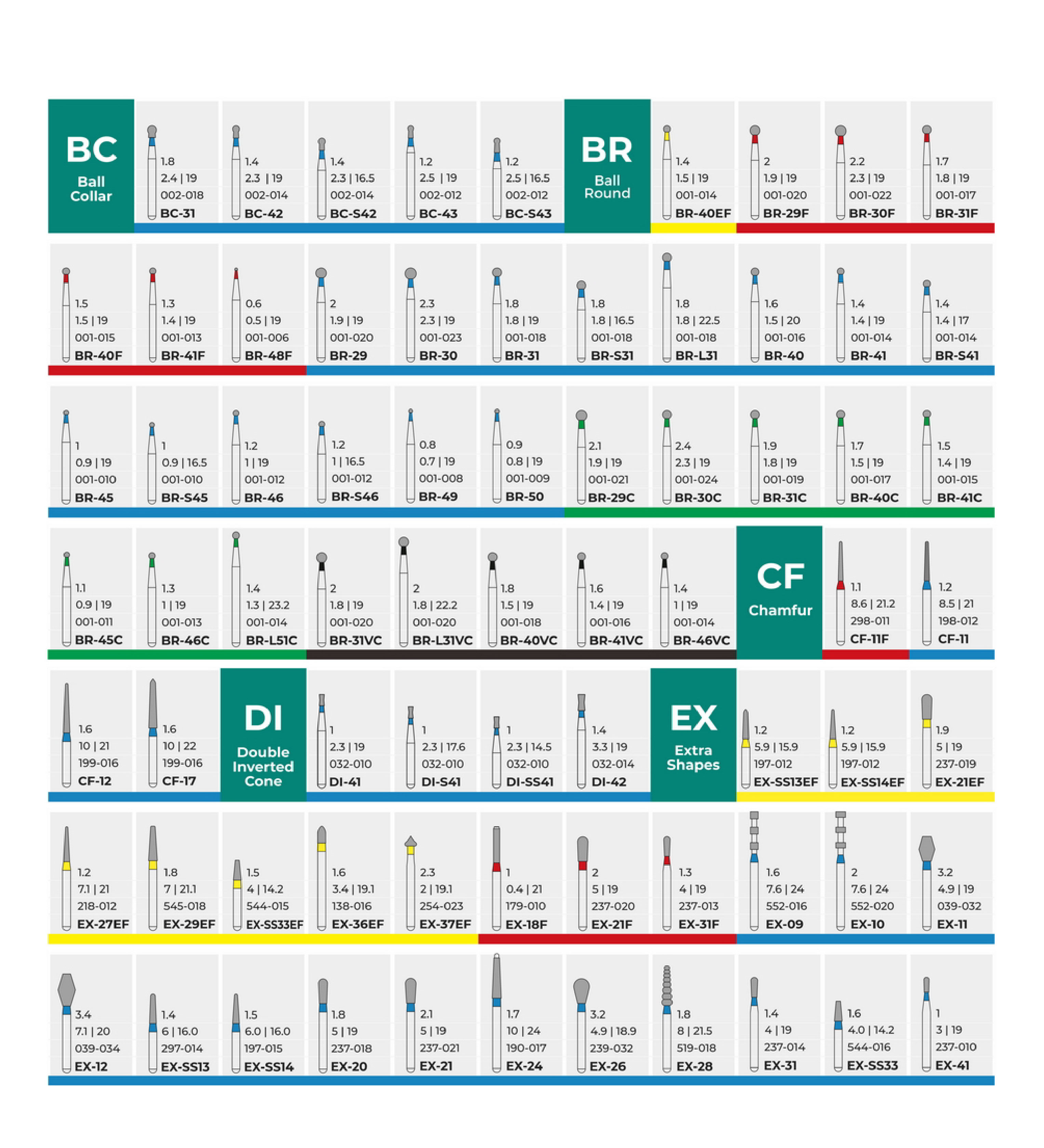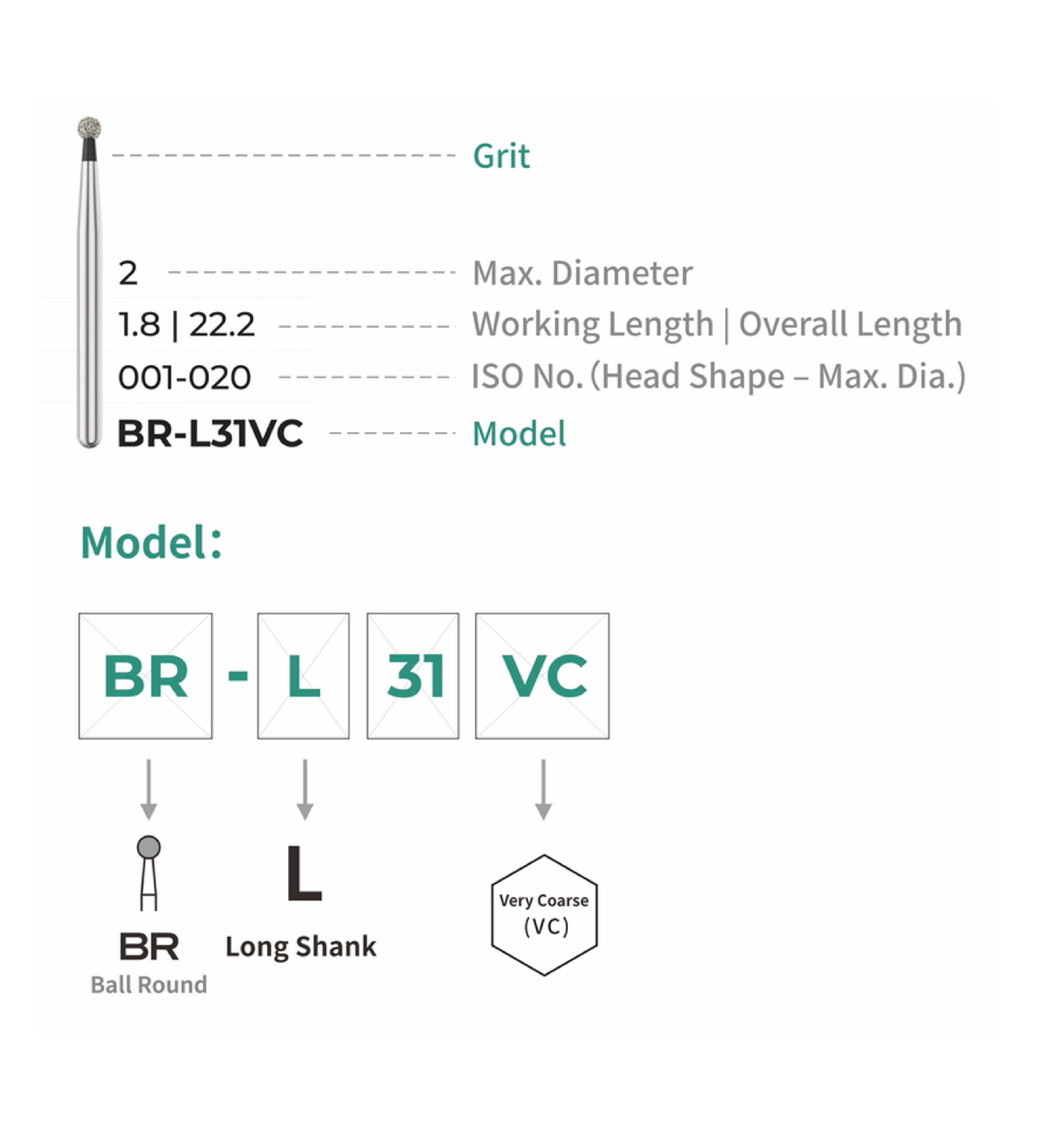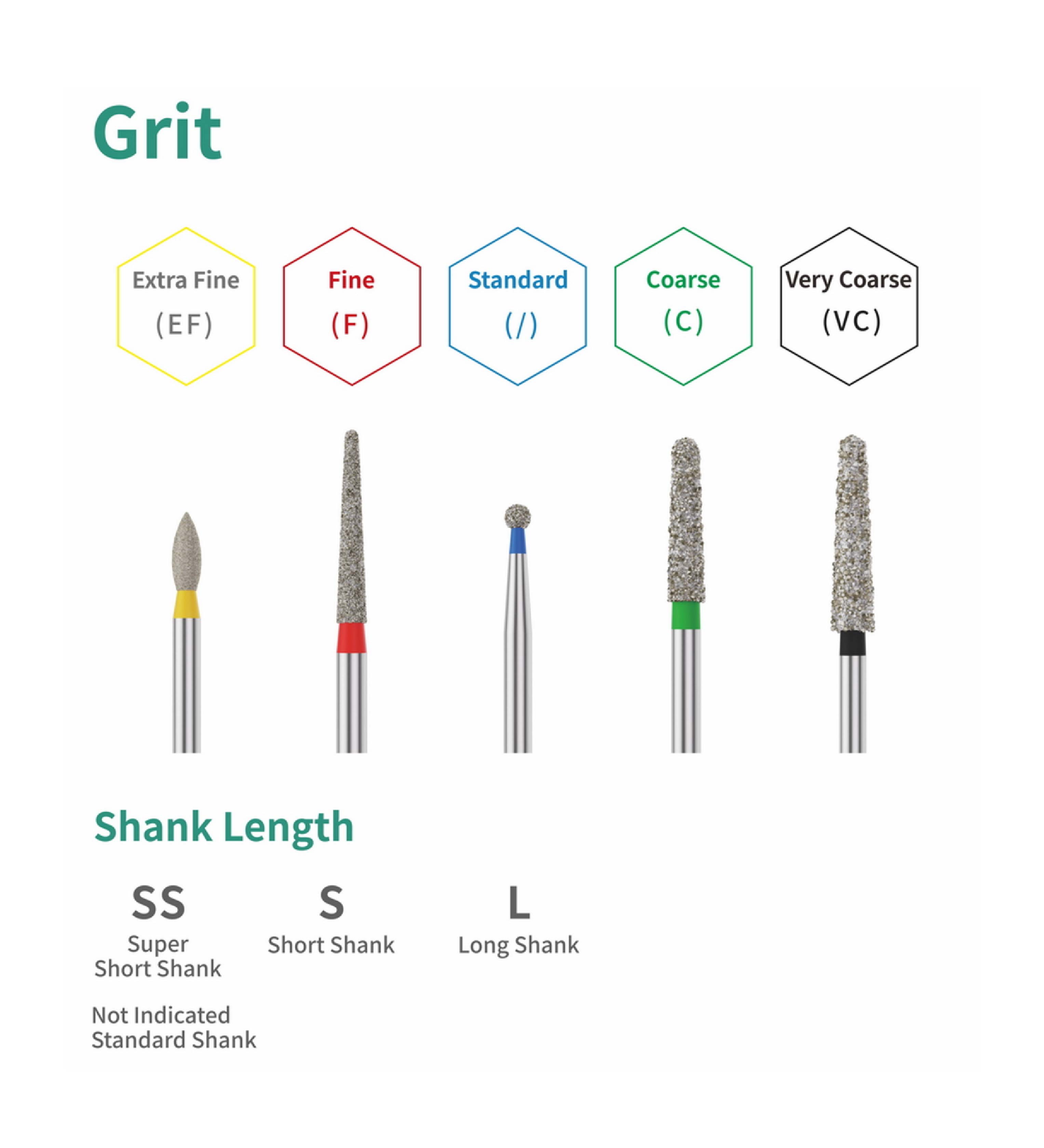 Our standard, coarse, and very coarse diamond burs feature a secondary layer of finer diamond particles. This double layer structure fills the gaps between the larger coverage, which offers superior durability and the ability to achieve a smoother finish than single-layer ones.